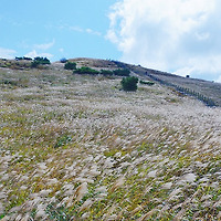 초가을 억새꽃이 막핀 간월재 억새평원과 저 멀리 간월산의 완만한 능선은 한국산의 멋을 그대로 보여줍니다.