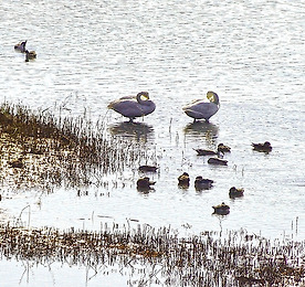 물닭 썸네일형 리스트형 물닭과 가마우지 온천천의 새까만 물새 물닭과 가마우지 겨울철 물가에 조금씩 돋아있는 파란 잎사귀를 뜯어먹는 물닭이 어찌 보면 예쁘게도 보입니다. 물가에서 사냥을 하고 휴식을 취하는 새까만 가마우지도 자세히 보면 상당히 예쁜 새입니다. 두 종류 다 새까맣기로 치면 까마귀와 견줄 만큼 새까맣습니다. 물닭(Eurasian coot, Fulica atra)은 뜸부기과에 속하는 새이랍니다. 학명은 라틴어에서 비롯된 것으로 Fulica라고 하는 검둥오리와 atra라는 검은색을 뜻해서 검은색 오리인 것이군요. 우리나라뿐만 아니라 아시아, 오스트레일리아, 아프리카의 일부 지역에 서식하는군요. 오스트레일리아의 아종은 Australian coot이라고 부르네요. 아래 사진은 민물가마우지인데 학명은 Phalacrocorax carbo입니다.. 더보기 큰고니가 왔습니다. 올겨울 첫 탐조로 을숙도를 한바퀴 돌았습니다. 올해 철새 1진이 도착하면서 큰고니가 한꺼번에 많이 왔습니다. 이곳에 있는분의 말에 의하면 이번주에 약 200마리 정도가 온것 같다고합니다. 일본에서는 백조라고 불리지만 우리나라에서는 큰고니입니다.두루미나 학이나 왜가리나 백로 황새등 비슷하게 생긴 텃새나 철새들이 더러 있지만 이 큰고니만큼 물에서 헤엄칠때 우아하게 보이는것도없으며 이만큼 덩치가 큰 철새도 없습니다. 어제 일요일이 하필 간조기라서 헤엄치는 우아한 큰고니의 자태를 많이 오래 볼수는 없었지만 작은 새들 사이에서 단연 돋보이는 새라는것은 확실한데, 물이 아닌 갯벌에서 어거정 거리며 걸어다니는 큰고니는 별로 멋지게 보이지는 않네요. 역시 물에떠서 미끄러지는 큰고니가 멋진데. 일요일날 을숙도 탐조는 전.. 더보기 을숙도에 철새 제1진이 도착했습니다. 을숙도에 철새들이 도착했네요. 오늘 을숙도 철새 보러 갔는데 몇일전부터 철새들이 오기 시작한다고합니다. 시베리아에서 출발한 철새들의 제 일진이 이제 막 부산에 도착한것입니다. 이제 2진 3진이 속속 도착하면 을숙도는 철새들의 천국이 될것입니다. 청둥오리 가창오리 물닭들이 석여있네요. 더보기 물닭 - coot, Fulica atra 물닭: coot, Fulica atra물닭은 가까이에서 보면 정말로 닭처럼 생겼고요. 물가의 언덕에 올라와서 돌아다니는것을 보면 물닭이라고 말 안하면 까만 닭이 돌아 다니는 줄 알 정도였답니다. 물에 헤엄치고 다닌때는 멀리서 보면 꼭 까망 비닐봉지가 동동 떠 다니는것 같은 느낌이 듭니다.온몸이 새까만 색갈이며 눈도 까만 색갈이네요. 뜸부기과의 습지 조류라고 합니다. 주로 호수나 강가의 갈대 근처에서 살며, 유럽과 아시아 지역에 많이 분포 한답니다. 한국에서도 종종 볼 수 있는데 보통민물가, 하천, 저수지 등지에서 겨울을 난다고 하는데 부산지역에서는 4계절 내내 볼 수 있습니다.종종 오리처럼 크기가 비슷한 다른 새들과 무리를 지어서 생활하기도 한다. 수영을 그다지 잘하는 종이라고 합니다.위협을 느낄때 갈대.. 더보기 군계일학(群鷄一鶴) 큰고니와 철새들 을숙도에서 철새를 보면서 담은 몇장의 사진입니다. 군계일학(群鷄一鶴)이라는 말이 생각나는 모습입니다. 큰고니 한마리가 유유히 헤엄쳐 가는 모습은 너무 월등해서 군계일학(群鷄一鶴)이라는 표현도 모자랄 정도 입니다.일본에서는 백조라고도 하는 이 하얀 큰 고니는 정말로 우아합니다. 여유 만만 자신감 만만 귀티가 철철 흐르는 우아한 모습이 이런것일 것입니다.그냥 새 한마리를 두고 너무 칭찬 하는것 같지만 청둥오리나 물닭등 다른 철새들이 모여 있는 늪지 언저리를 유유히 헤엄치는 모습이 참 멋있는 것은 누구도 부정 할수 없을 것입니다. 원래 군계일학(群鷄一鶴)이라는 말은 닭의 무리 중에 학 한마리가 섞여있어서 유난히 돋보인다는 말 이지만 ,실제로 쓰임새는 많은 사람들 가운데서 출중하게 뛰어난 인물을 이를때 주로 쓰.. 더보기 철새들의 낙원 주남저수지 시베리아에서 날아온 철새들의 낙원 주남저수지. 오래전에 주남저수지를 방문하고 담아논 사진입니다. 찰새들의 낙원이란 생각이 들 정도로 수많은 종류의 많은 철새들이 활발하게 먹이활동을 합니다. 내륙저수지 주남호는 낙동강하구 을숙도와 함께 남부지역 주요 철새 도래지 입니다. 아래는 물닭과 청둥오리 가마우지 큰고니가 함께 섞여 있습니다. 탐조하기 좋고 경치도 좋은 주남저수지는 겨울철새들의 낙원입니다. 더보기 이전 1 다음